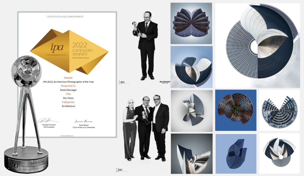 In 2025, his book Eternal Frames earned first place in the Book category at the IPA. The book spans five continents and 86 cities, celebrating architects and creators who design spaces that are not only beautiful but also safe, harmonious, and inspiring. Through this collection, Ramin invites viewers to see architecture as a living art form, capturing the spirit, creativity, and serenity embedded in each structure.